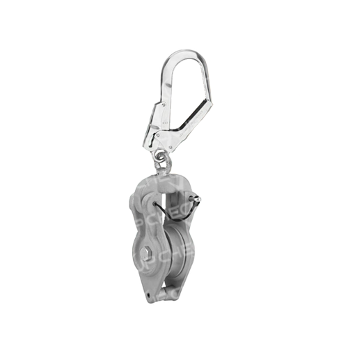 Carretilha para içar materiais 454 KFG com gancho abertura 55mm, tradicionamento e elevações de materiais, com dispositivo para engatar ou desengatar a corda rapidamente na roldana, possui dois rolamentos que reduzem o esforço físico do operador. Fabricada em aluminio-liga, gancho em aço especial com tratamento anti-corrosivo.