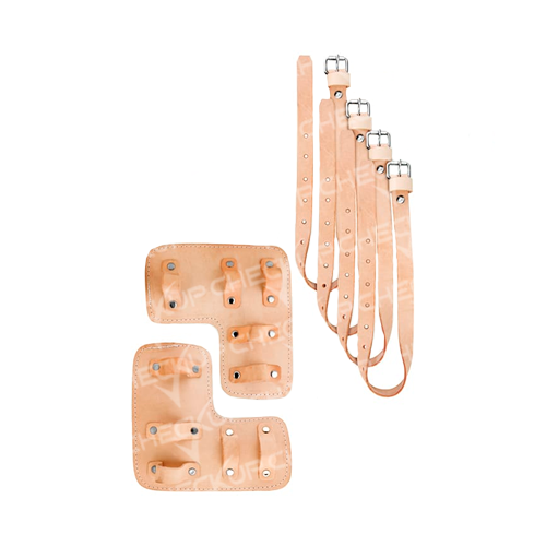 As correias e almofadas de couro, com espuma de nylon, ajustam as esporas às pernas do espoeiro, proporcionando-lhe conforto e facilidade para o trabalho.