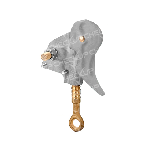 Grampo de aterramento tipo bico de pato por torção e mola. Fabricado em alumínio-liga. terminais em latão liga de alta resistência, parafuso olhal em latão forjado. Capacidade de conexão: mínima 3mm – máxima 31mm.